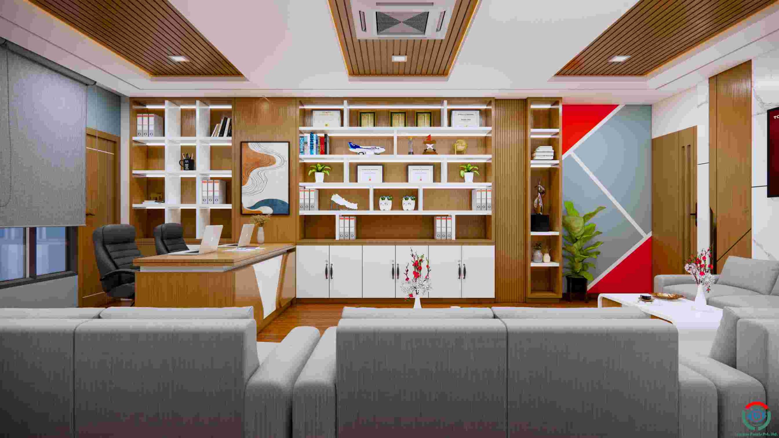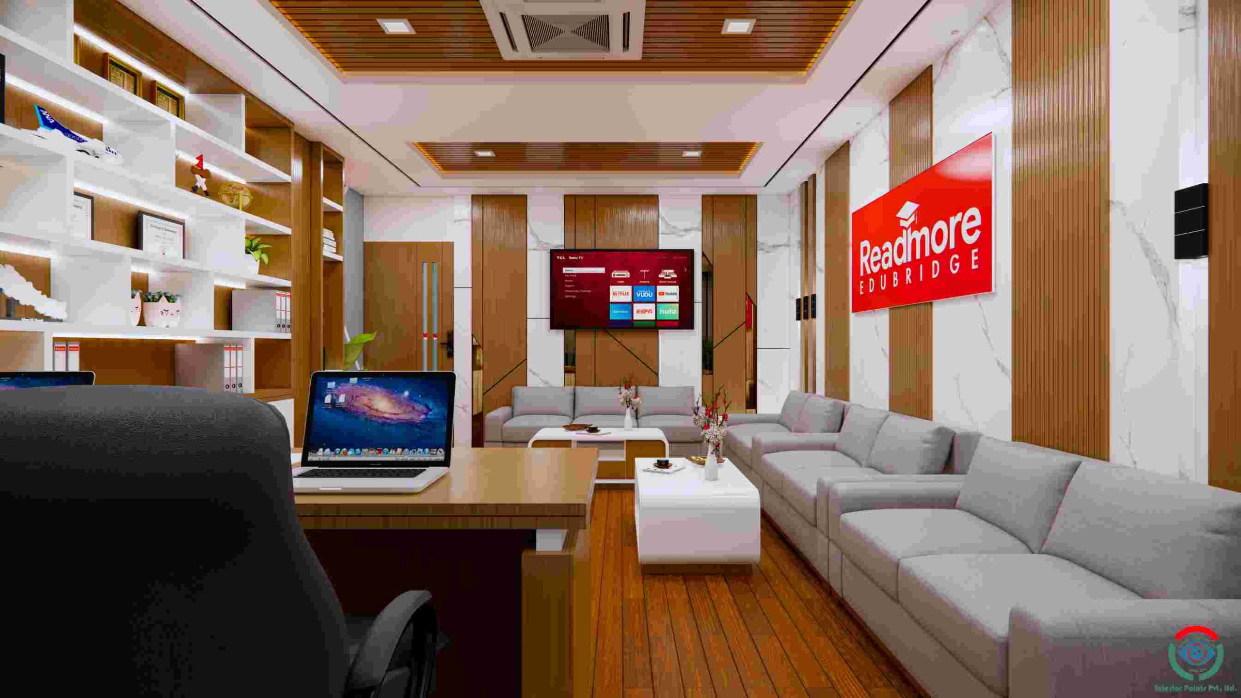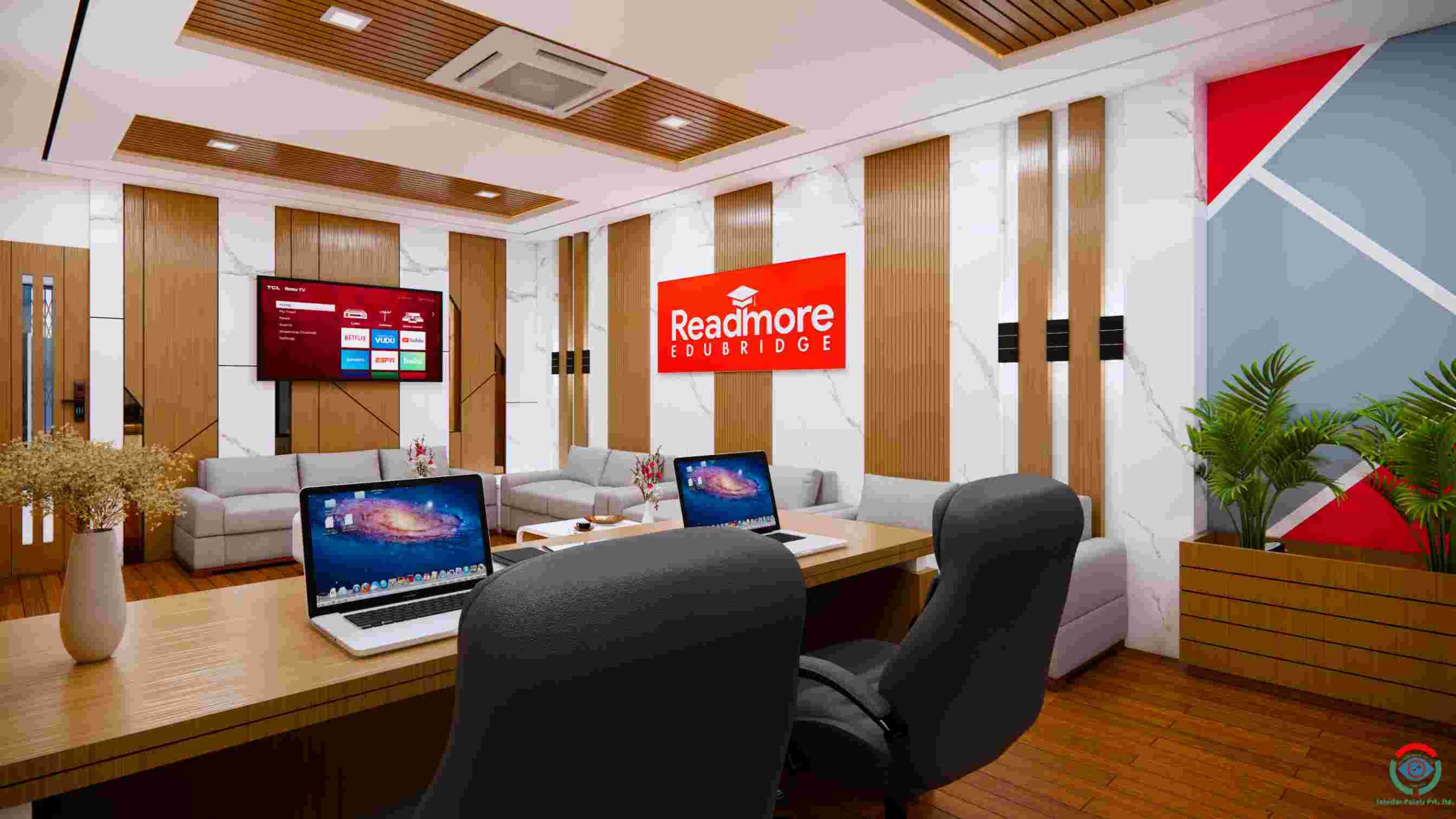 The interior design of Readmore Edubridge Consultancy blends modern functionality with subtle academic inspiration, creating spaces that feel both professional and warmly welcoming. The design reflects a thoughtful balance between clean contemporary lines and elements that highlight learning, growth, and global opportunity.